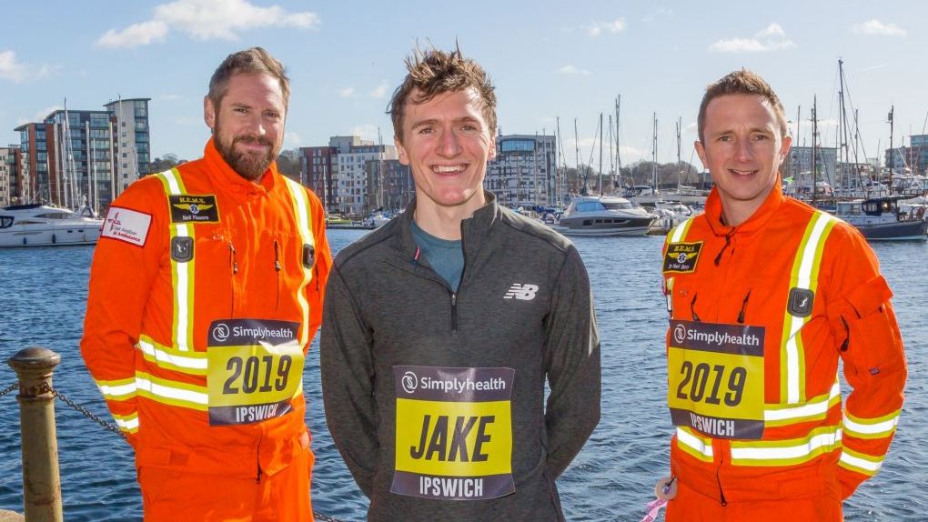 Runners from East Anglian Air Ambulance charity met Commonwealth bronze medallist Jake Wightman as they launched the 2019 Simplyhealth Great East Run at Ipswich Waterfront on March 5.