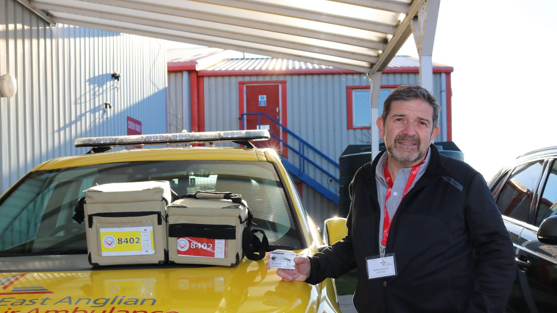 The East of England Ambulance Service team who were first on scene radioed for the air ambulance as they could see Andrew was in a bad way. They suspected he had major internal injuries and might need a blood transfusion. The East Anglian Air Ambulance (EAAA) Anglia One team from Norwich, of pilots Steve Norris and Rob Gleave and Doctor Nicola Ebbs and Critical Care Paramedic (CCP) Rod Wells, was on scene 17 minutes after being tasked to help Andrew.