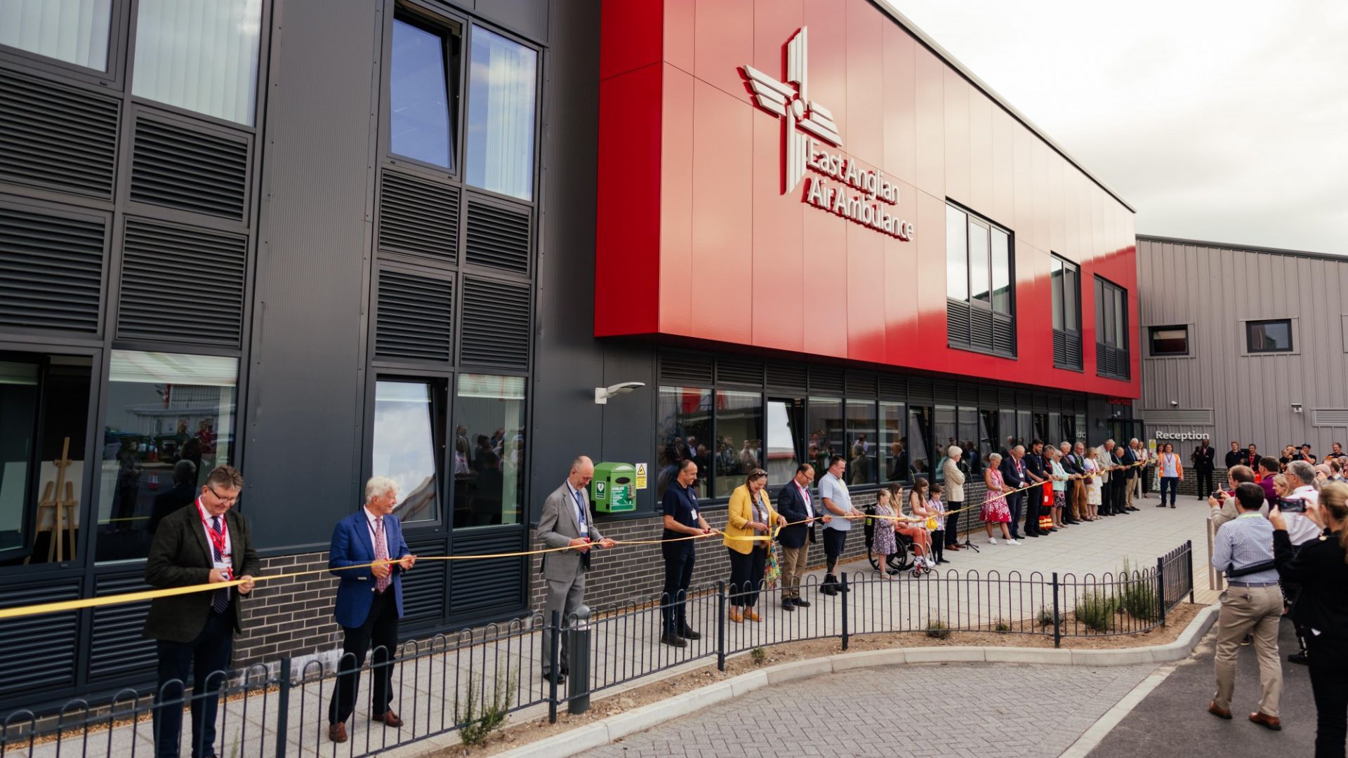 22 key figures representing the lifeblood of the charity, including former patients, donors, crew, a staff member and a volunteer, cut a yellow ribbon to officially open the base, which was completed earlier this year.