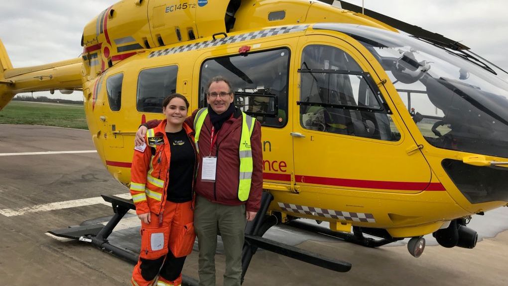 Alongside air ambulance Critical Care Paramedic and CPR Training Manager Page Chamberlain, former EAAA patient Andy Read is aiming to train 650 people in how to confidently use a defibrillator.