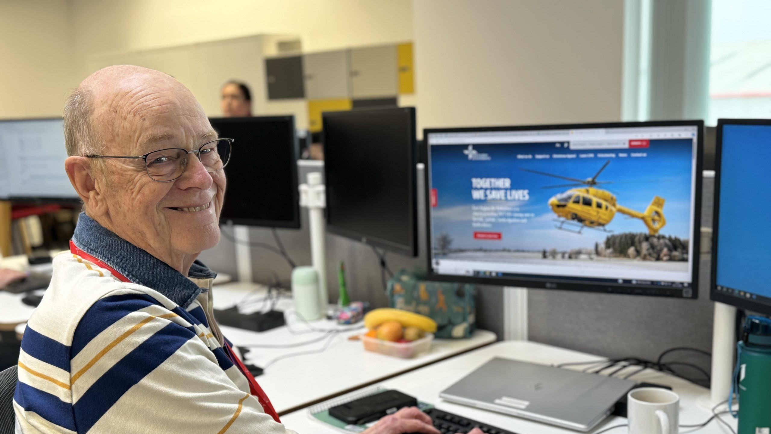 Ken says, “Helping with base visits, meeting people from other organisations and seeing their faces, is great. Sometimes all they know about the charity is our ‘big, yellow bird’, so when they come into Helimed House and have a chance to see the helicopter, the facilities, equipment and talk to the crew, they realise more about what is involved in delivering a 24/7 life-saving service. I really enjoy this.”