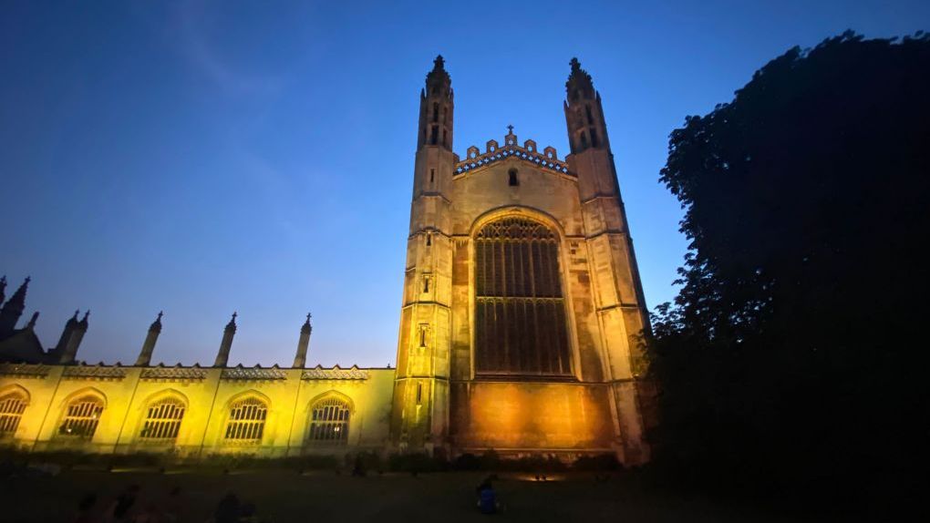 On Monday 6 September King's College, Cambridge was lit up in yellow lights in support of East Anglian Air Ambulance to mark the start of Air Ambulance Week 2021 which runs from 6-12 September.