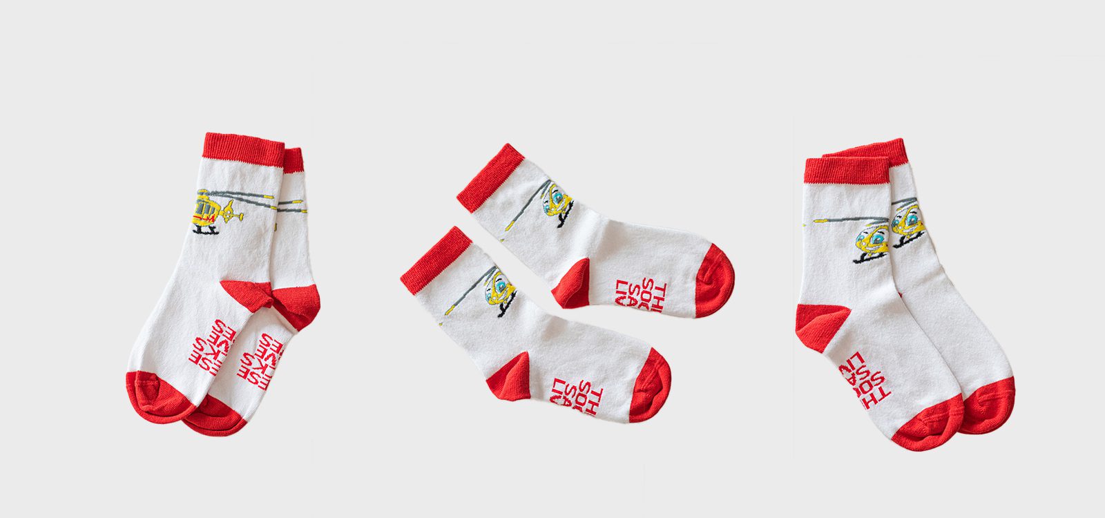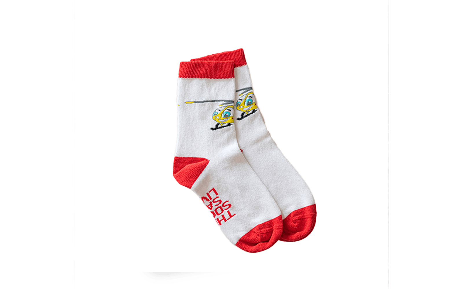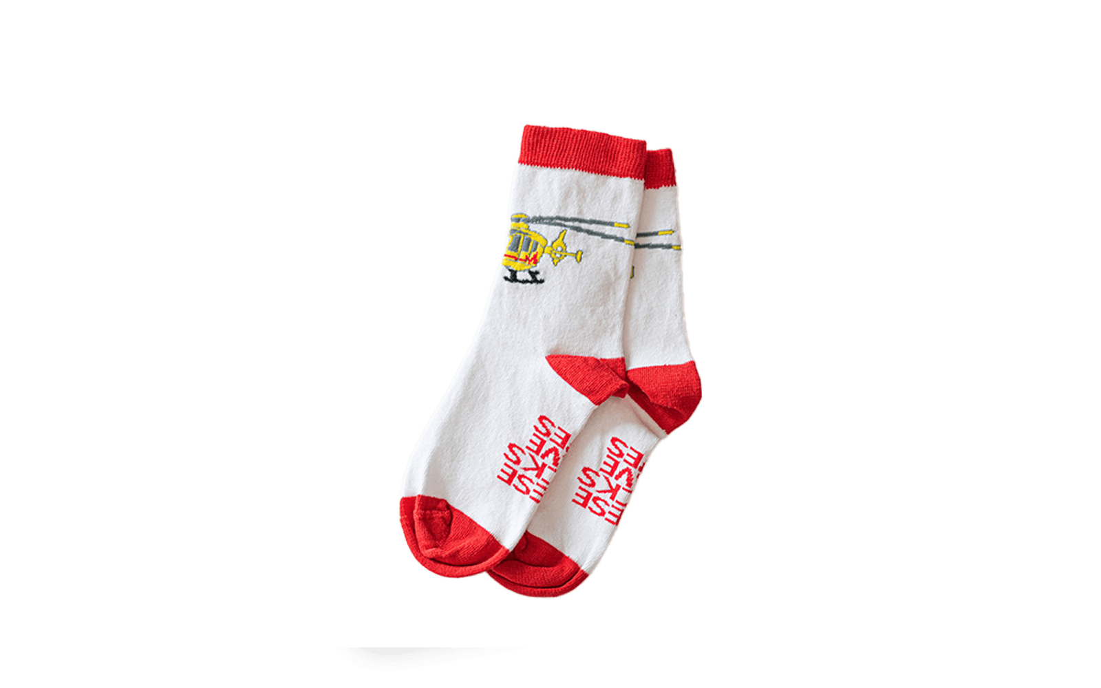 These children's socks, sold by the East Anglian Air Ambulance (EAAA), combine comfort, durability, and a delightful design. Suitable for sizes 9 to 12, these socks are made from a high-quality blend of 75% cotton for softness and breathability, 24% polyamide for strength, and 1% elastane for a perfect fit. Each pair is adorned with the inspiring message "These socks save lives" and features a charming image of EAAA's beloved mascot, Helibobs.