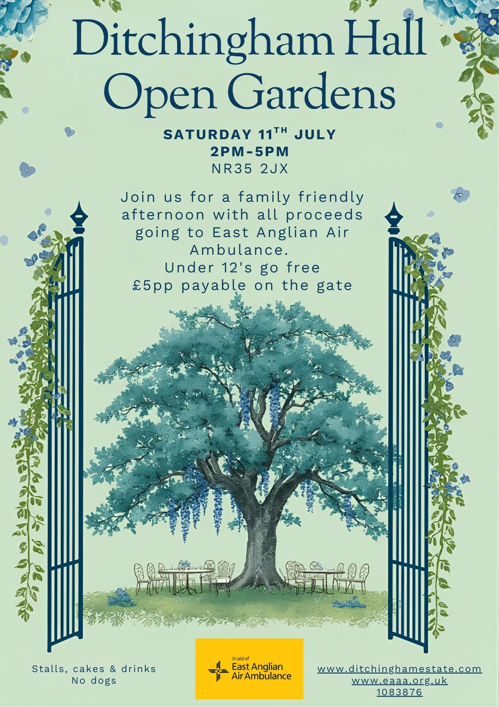On Saturday 11th July, at 2pm, Ditchingham Hall will once again, open their beautiful gardens for the public to enjoy whilst raising money for East Anglian Air Ambulance.