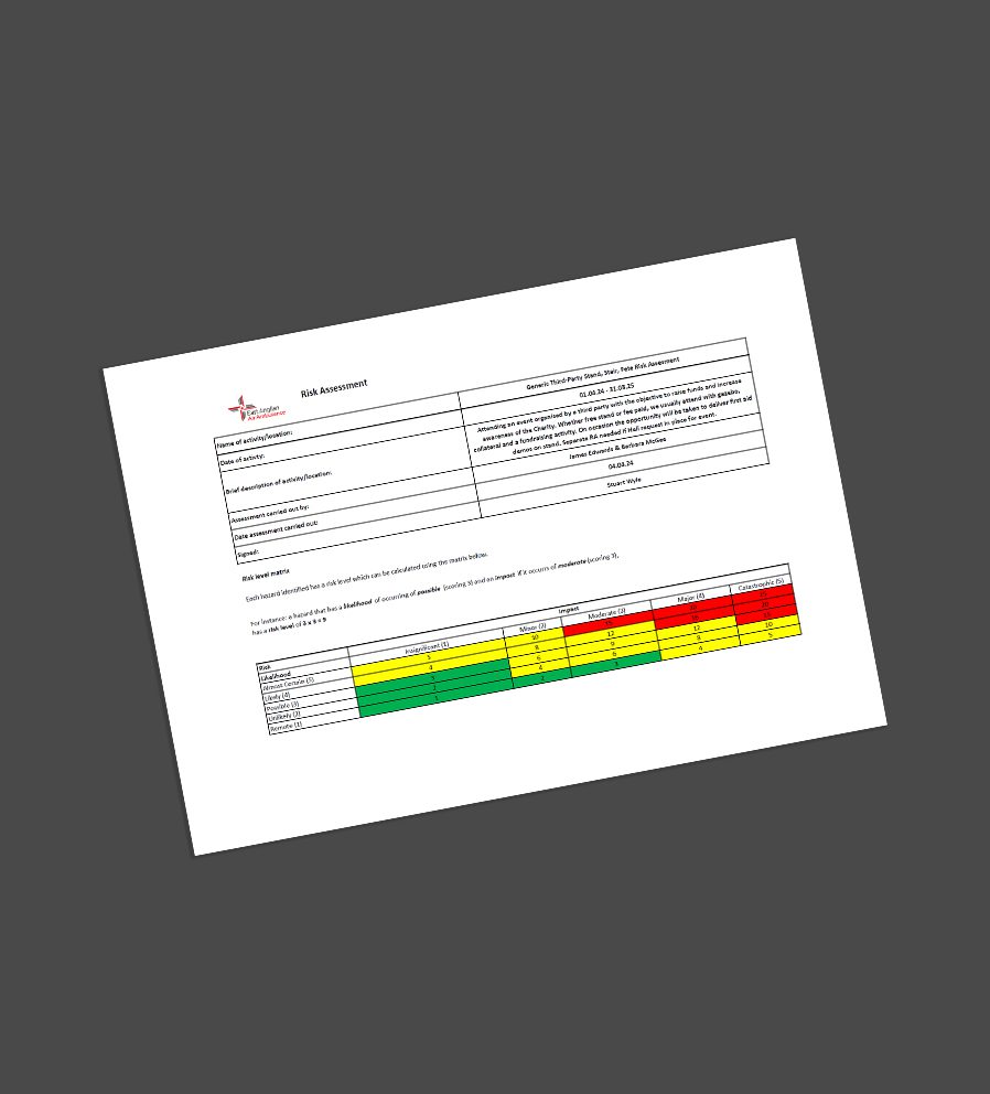 Generic 3rd Party Stand, Fete Risk Assessment