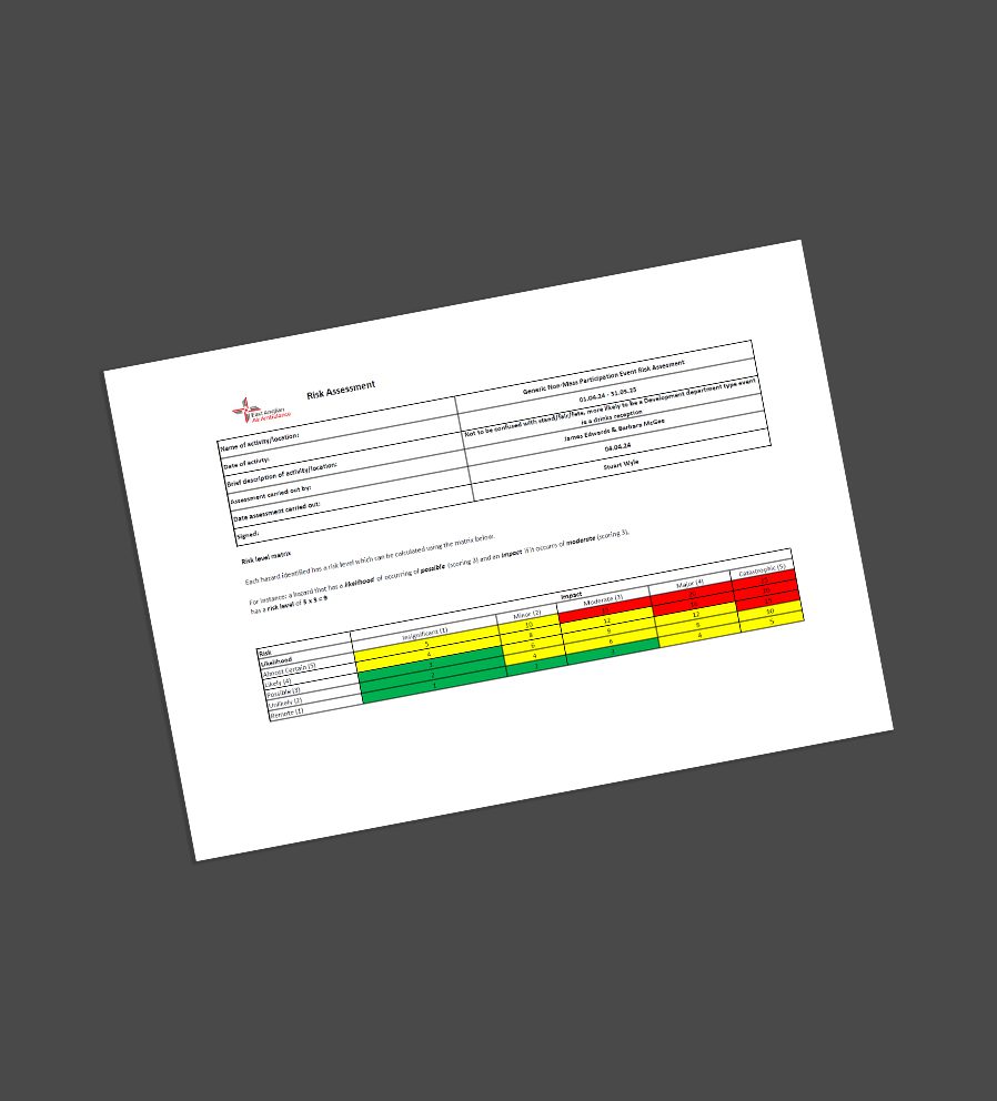 Download our risk assessments to ensure you activity runs smoothly.